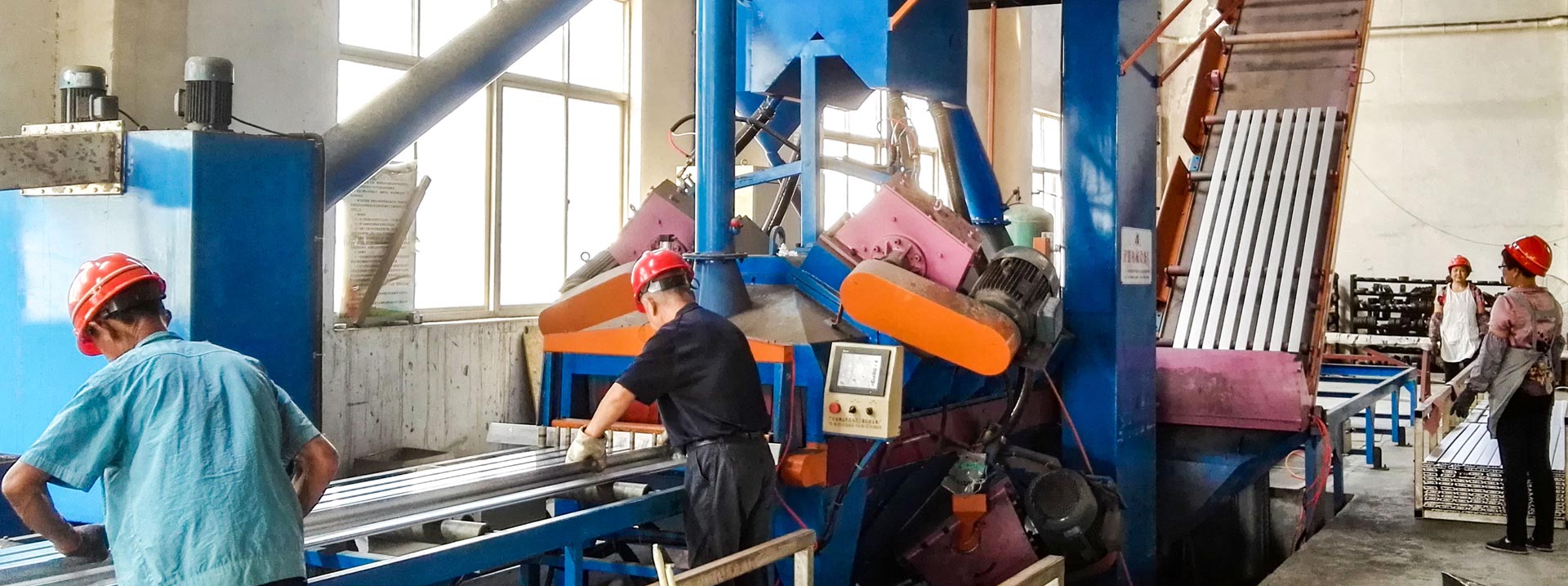 專業(yè)生產(chǎn)多種鋁合金型材及制品的企業(yè),已有二十多年的經(jīng)驗(yàn)和歷史。現(xiàn)有鋁型材擠壓設(shè)備四套,分別為1800T、1000T、630T、600T擠壓生產(chǎn)配套設(shè)備有10m長不銹拋丸機(jī)。6m鋁型材表面拋光機(jī),4.5m普拉迪鋁材加工中心,多臺(tái)高精度自動(dòng)切割機(jī),雙頭轉(zhuǎn)向切割機(jī),備有12m長時(shí)效爐。